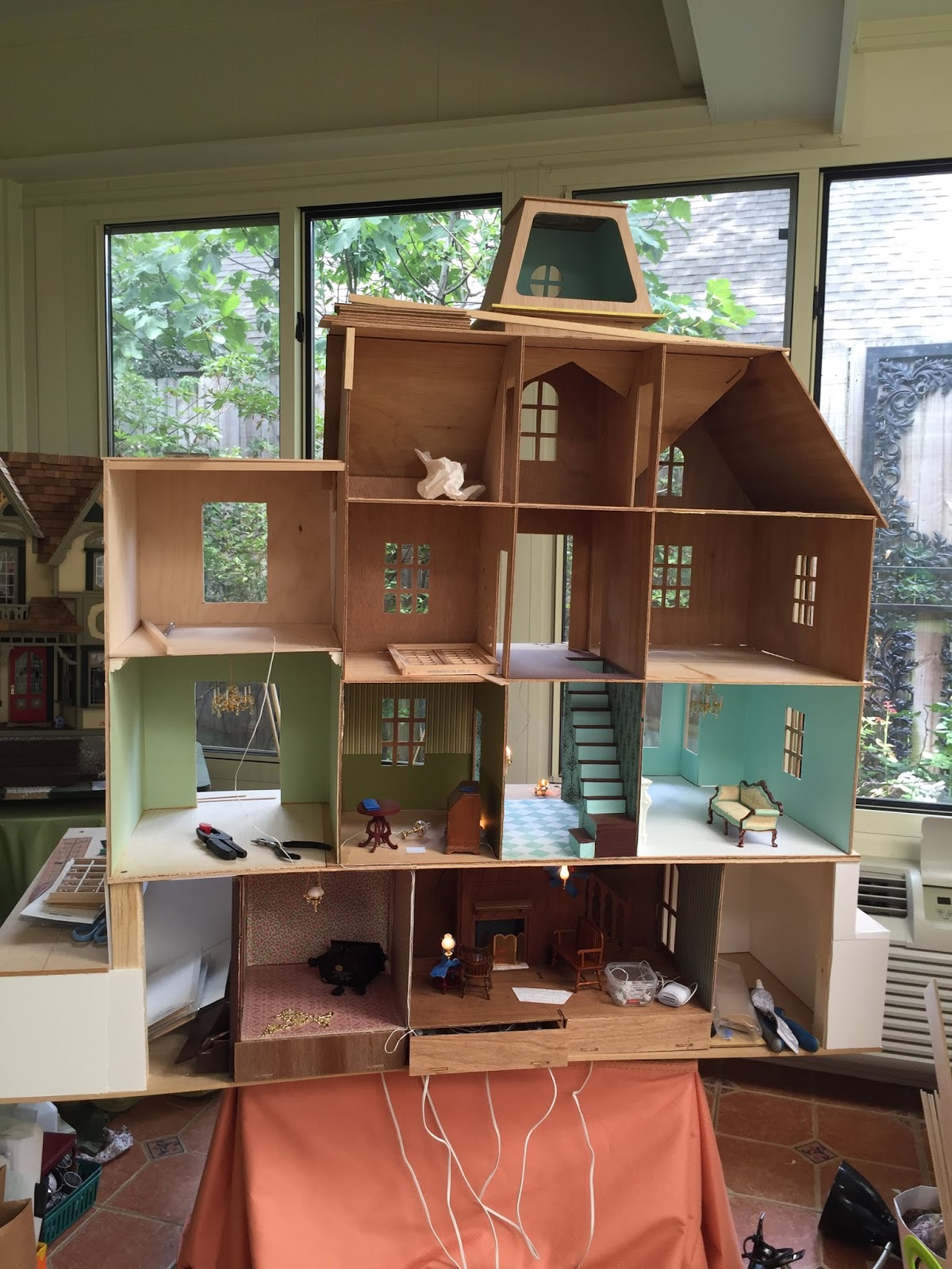 WOW! It has been years since I posted on my blog. Lots of life getting in the way. However, I have been building dolls houses. I had built a small one while we were in Missouri which sort of looks like the 1892 Victorian we spent TWELVE years restoring. Since I am from Houston, Texas, where it is hot and humid 11 1/2 months of the year, the Missouri winter finally got the best of me. Three years we suffered the loss of two family members in one week. I got so depressed I couldn't function. Since I had built the small dollhouse, my husband thought a large one would help me out of my depression. It did. Slowly.